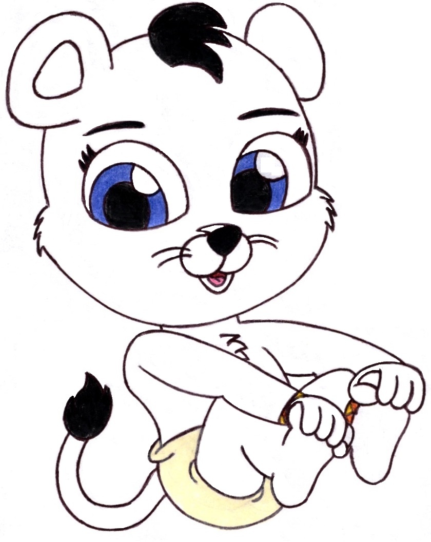 Here we have Zuberi, a baby white lion cub who is the adopted baby brother of Lakeisha. Not much is known about where he came from other then he was dropped off at an orphanage in Kenya. Lakeisha's family went to adopt a new baby at the orphanage and found him. He was scared at first but ended up latching onto Lakeisha and have become very close. He is like any other baby, happy, playful, and always curious about the world around him.