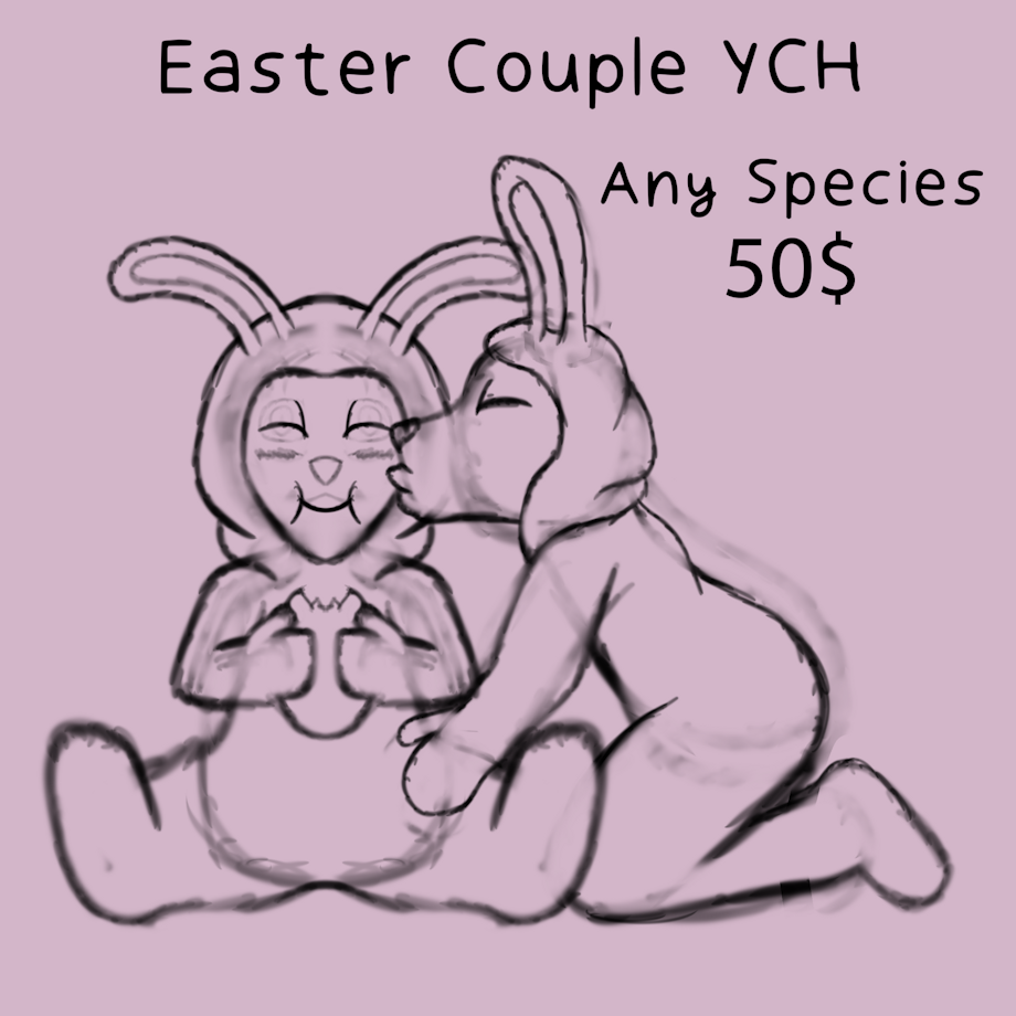 Opening up a Easter YCH, share around hehe It's gonna be colored and shaded, With some cute small details I can make as scenery