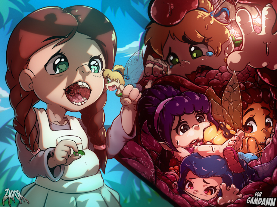 There another commission for cool dude gamdann from Eka`s portal, who wanted see a Lizzy from Disney fairys show, which find a funny way stay with her friends forether! And seems like two from they clearly against this way, but two another don`t really mind~