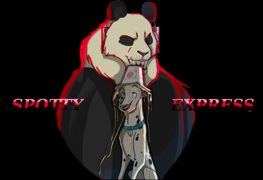 a semi humorous com for Pongo12345 on FA of his spotty self Kaz getting into trouble with the Panda Express mascot. Wonder how he'll get out of this bit of trouble after stealing her noodles and being caught red pawed xD