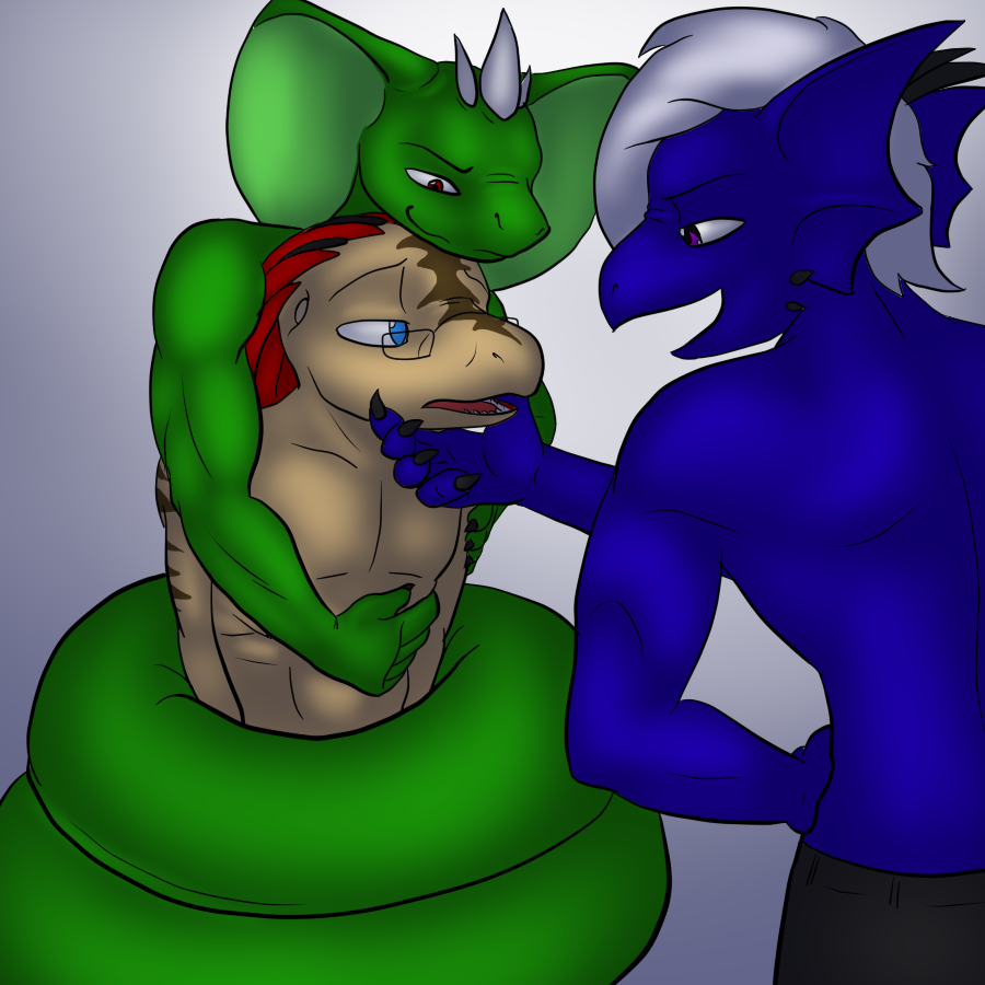 , featuring the lovely coils of Shen Sorein who I don't think is on FA. The poor lil jock's being tranced by the two of them!