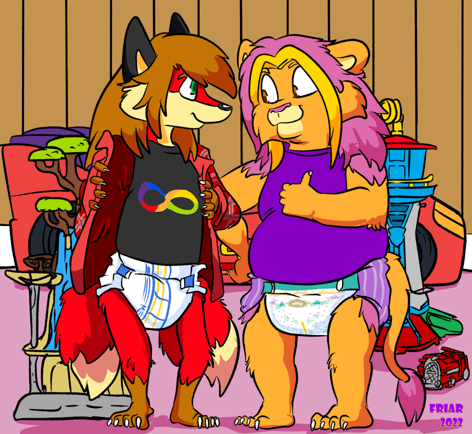 Ozzy is wearing a shirt he got for Autism Acceptance Month, and Friar likes it. I drew the Paw Patrol Lookout Tower and Lion Guard training lair since those are some of my really intense interests.