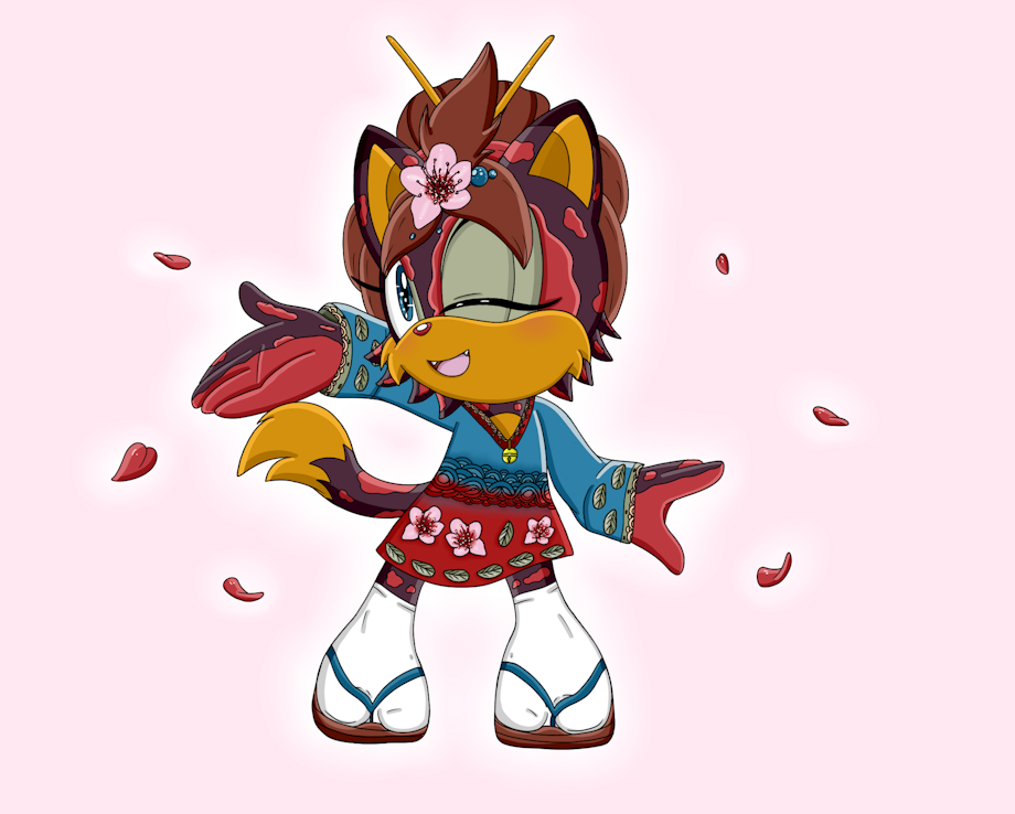 I was originally going to design a Maneko Neko (Lucky Cat) in Sonic style, but, then I had a colour scheme which I really wanted to use on a character, and then I just got a bit crazy with her design and ended up with something completely different x3;