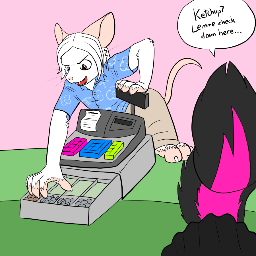 Skunk butts are hawt >-> but yesh, wonder why the mouse is going for the change in the drawer xD