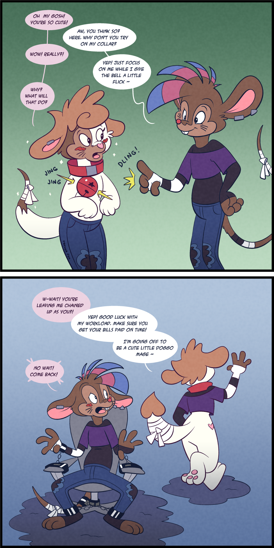 Sonan was infatuated with my mouse, so I decided to use that to my advantage. If he loved me so much, I'm sure he wouldn't mind becoming me! Hope he enjoys my workload because I'm going to enjoy some time-off as him!