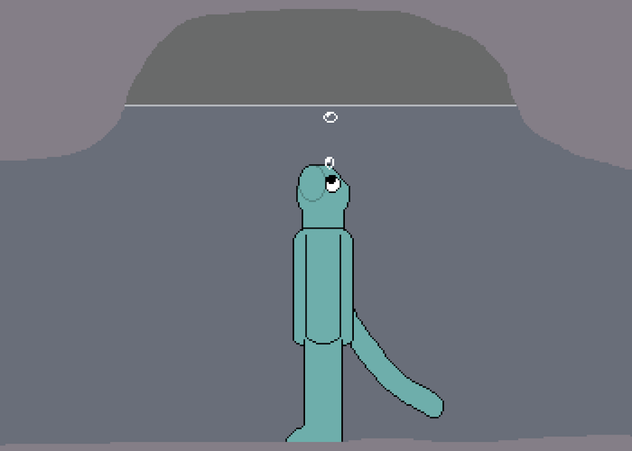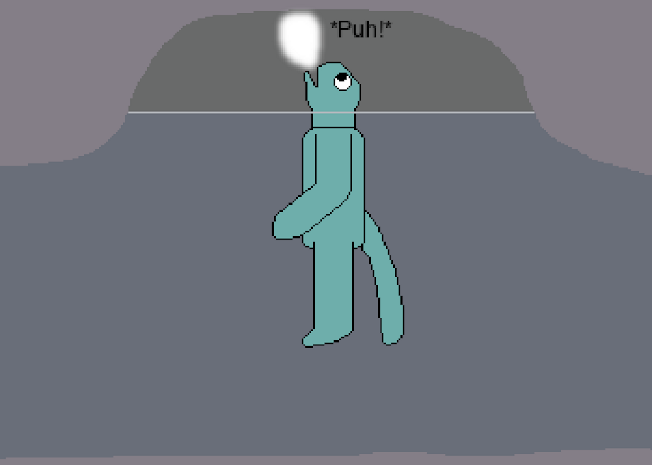 My dude here has got some hammerspace lungs, able to hold in way more air than it seems like he should. He can exhale enough for a sizeable air pocket in one go, rest his lungs in it for a while, then just suck it all back up and keep swimming. Even this much air is only about a fifth of what his lungs can hold!