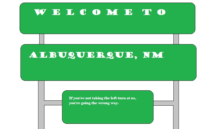 You know how nowadays, when someone's going on a long road trip and they stop to look around, but when they find that it wasn't at all what they expected, they say, "should've taken that left turn at Albuquerque?" Well, that inspired my latest idea for a new tagline of the city! (for funsies, of course)