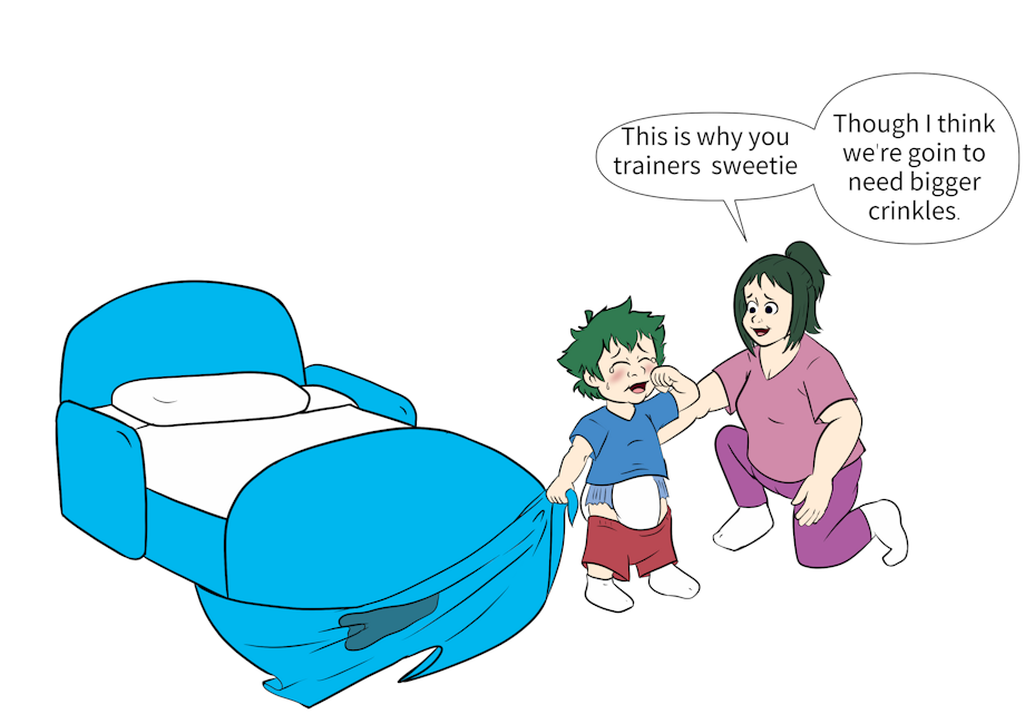 Set after Deku learns he's quirkless and it seems it's lead to a slight issue. We'll he's only five suerly he'll grow out of it... right? Hopefully Inko doesn't go overboard spoiling him; that'd be awful. >:)