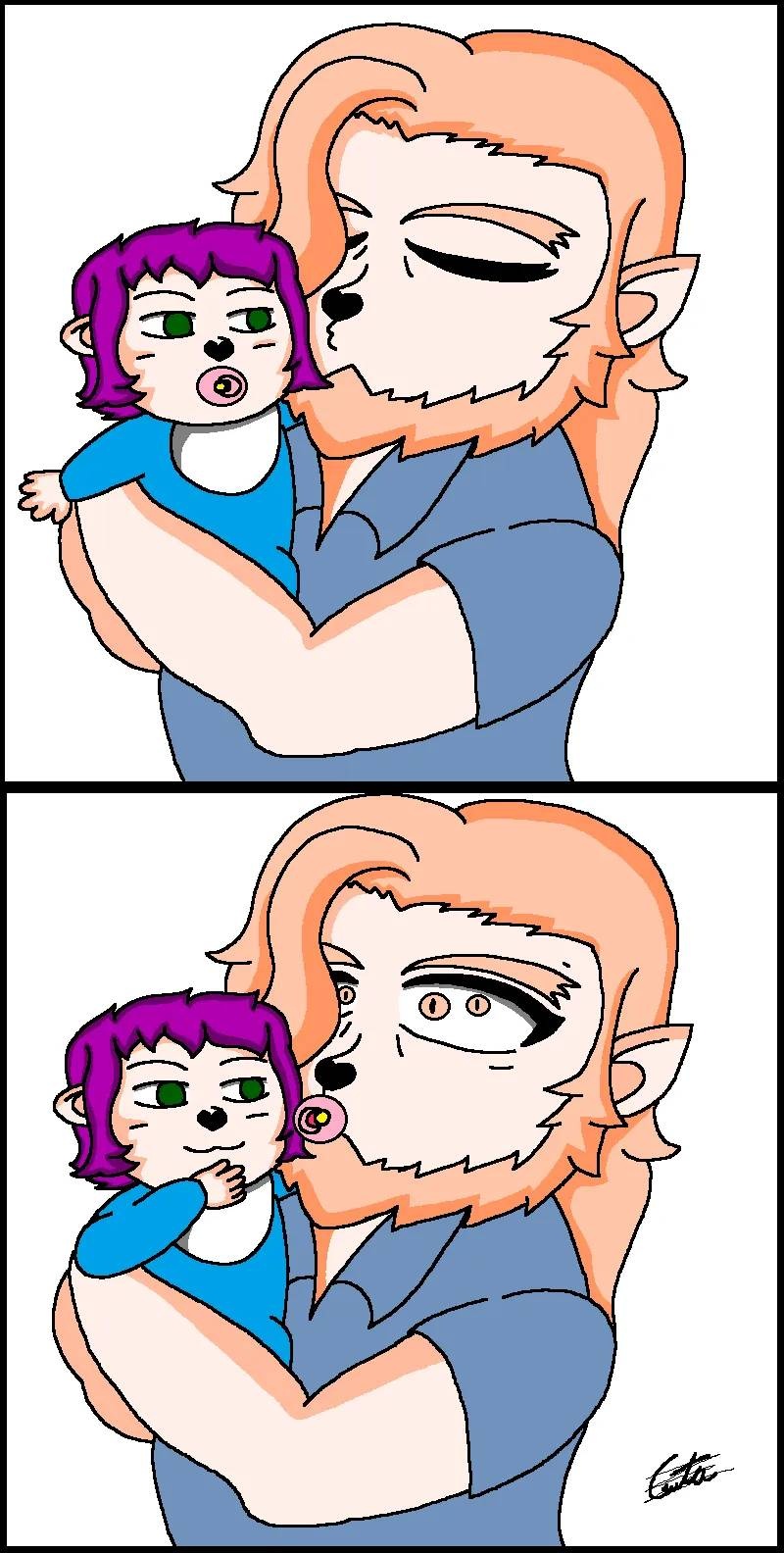 Decka cuidando de su pequeña nieta. La iba a besar en la mejilla pero a esa bebé parece que no le agradó la idea x3 ------------------------------------------------------ Decka taking care of her little granddaughter. He was going to kiss her on the cheek but that baby doesn't seem to like the idea x3