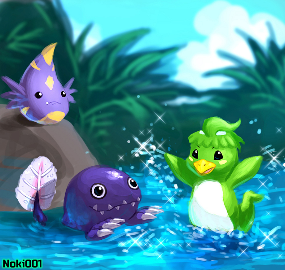 Dorulumon, Cutemon and Sparrowmon from Digimon