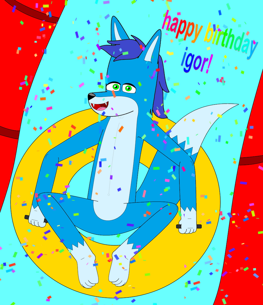 animator igor was going to the water park to cellebrate his birthday, he has taken off his clothes and goes to a waterslide, he grabs a yellow floater and started to slide. after waterslinding on a regular slide then he wanted a awesome challenge, then he saw the Aquatic Adrenalizer 5000 the awesomest slide of all Aquaraja Water Park, then he climbed a looooooong way to the top, before slinding the entire course he signed a insurance contract to avoid getting hurt, then he slided so fast by passing some loops, doing turns getting water on his face and he saw a ramp of the ultimate splash, then he flew so high that can see the moon and falls at higer speed and yelled "MEGA MASTER ULTIMATE CANON BALL!!!!!!!" and SPLASH, he splashed so hard on the water like a boulder that the judges are now impressed and gave him three tens, animator igor was feeling tired and very wet so he dries himself making water leave his entire blue fur, and had an amazing adventure on the water park.