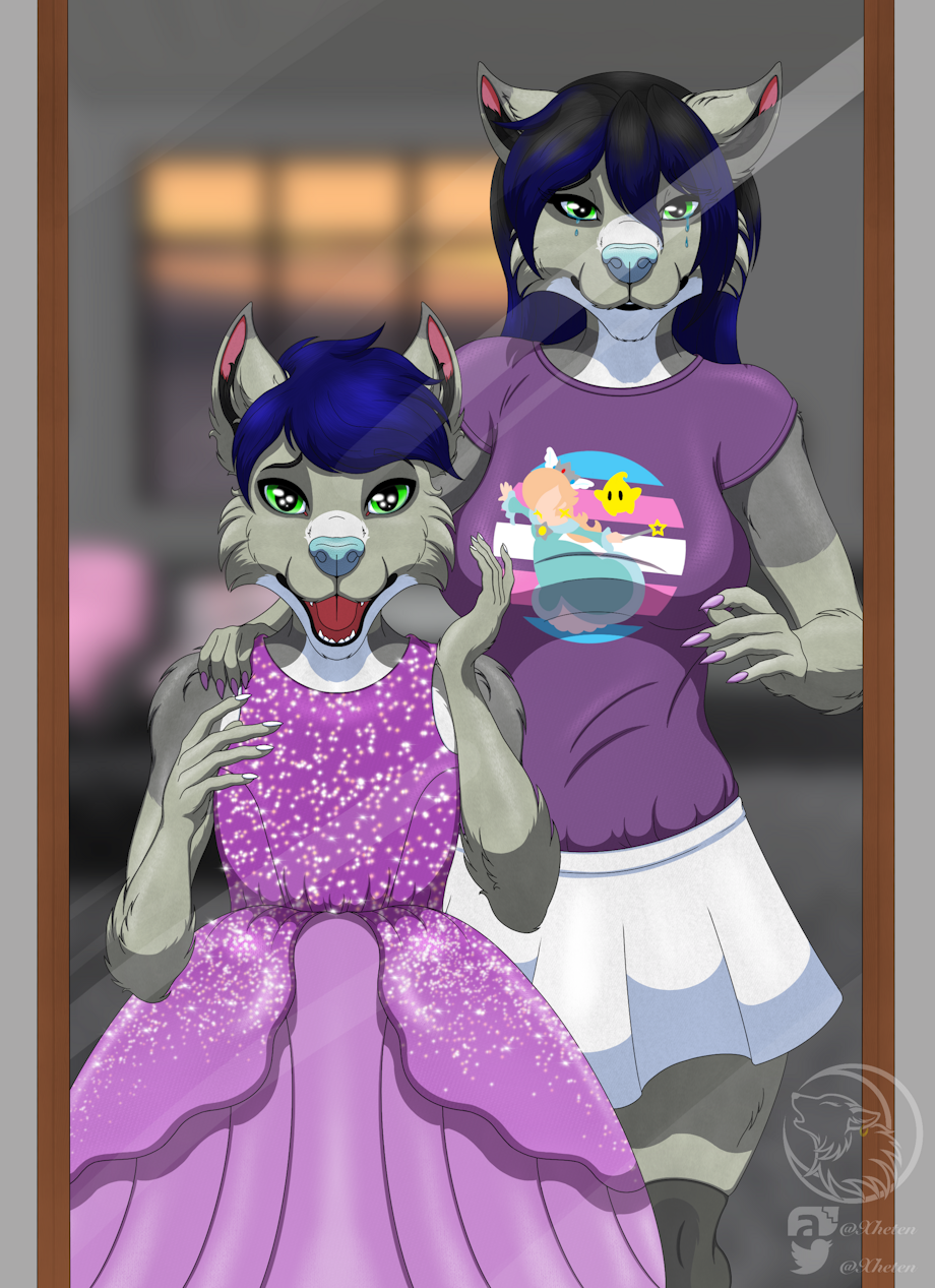 about her grown up fursona helping her past self discover who they really are and being absolutely proud becuase they made it! ♥