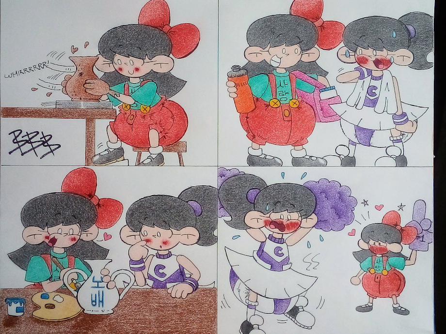 Ae-Cha and Bo-Bae partaking in each of their own hobbies, and being supportive of each other's. 😁