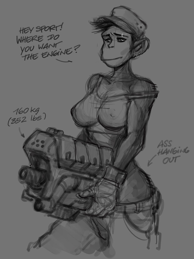 Yello does not need an engine hoist, she just lugs the entire thing around by hand.