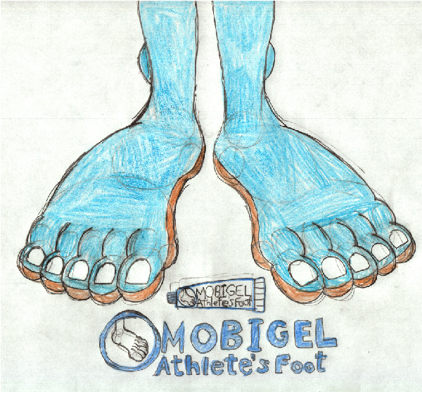 Felt like drawing a pic of my OC Pamela the Badger's feet with a tube of Mobigel antifungal cream between them and the Mobigel Athlete's Foot logo on the bottom.