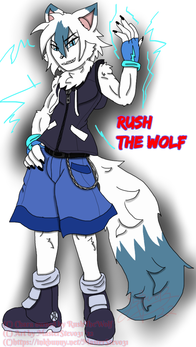 An image of my current look drawn by him! A former rockstar with a passion for showing off his lightning powers! Now retired, he begins to go back to his martial arts roots, but often checks out new talent elsewhere.