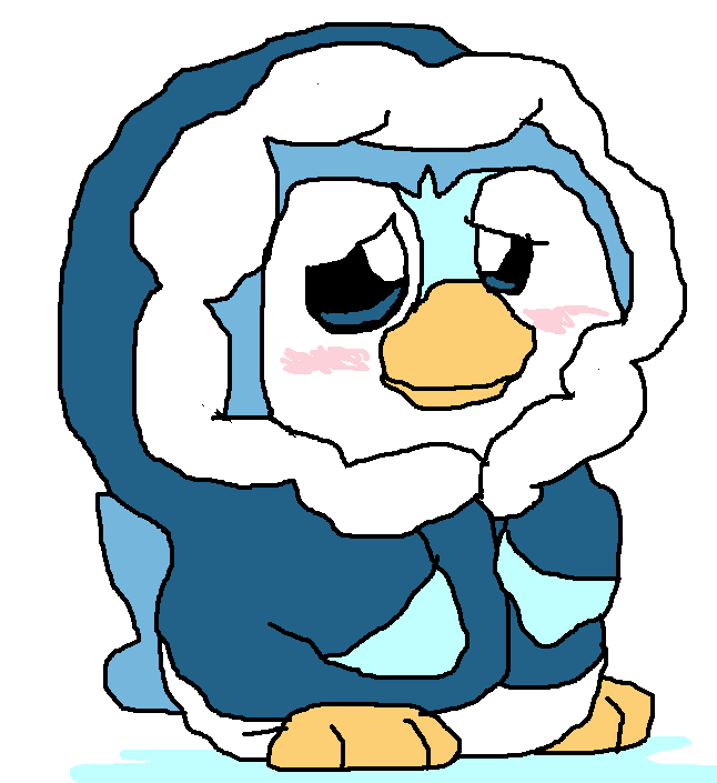 of a diapered piplup in a fuzzy coat.