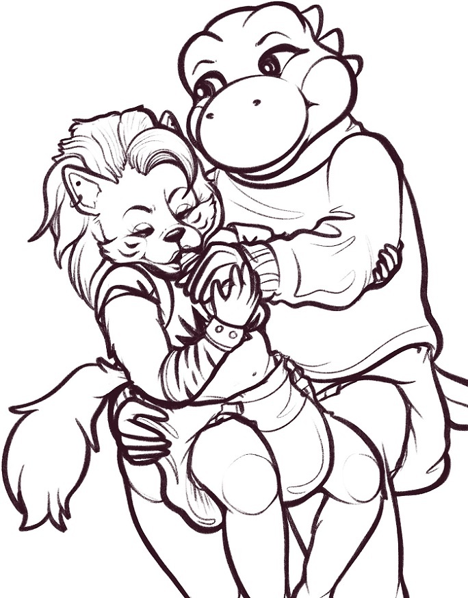 Showtime watching over Roxanne, who's enjoying her time with her dino babysitter (as well as enjoying her full bottle and diaper).