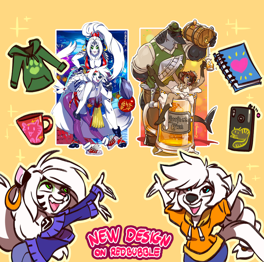 Two new design just got available in our Redbubble shop; the kittens cosplaying as Mai Shiranui and Yuri Sakazaki from the King of Fighters series, and the new year beer celebration with Chris and Nora! I thought these two pictures would look really goon on t-shirts and on other stuffs, so we decided to turn them into Redbubble designs :) So you can get t-shirts, stickers, magnets, coasters, mouse pads and a ton of other stuff with these new designs, so if you like them go and check out everything available! ;)