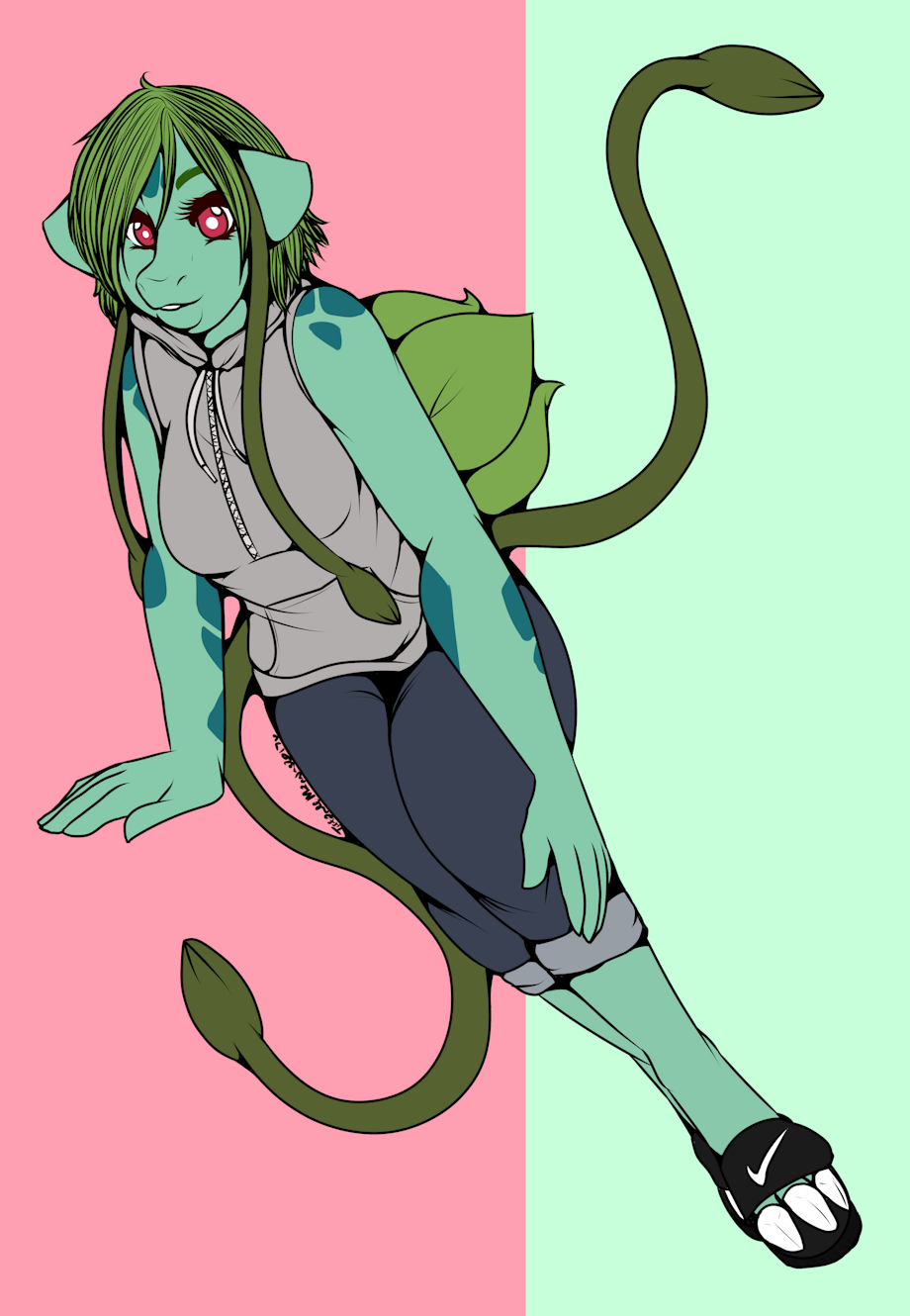 I made myself a new wardrobe and I wear new clothes that fit me very well to my life, like my sleeveless hoodie that helps me take more sun to give me energy, because I am a plant type now.