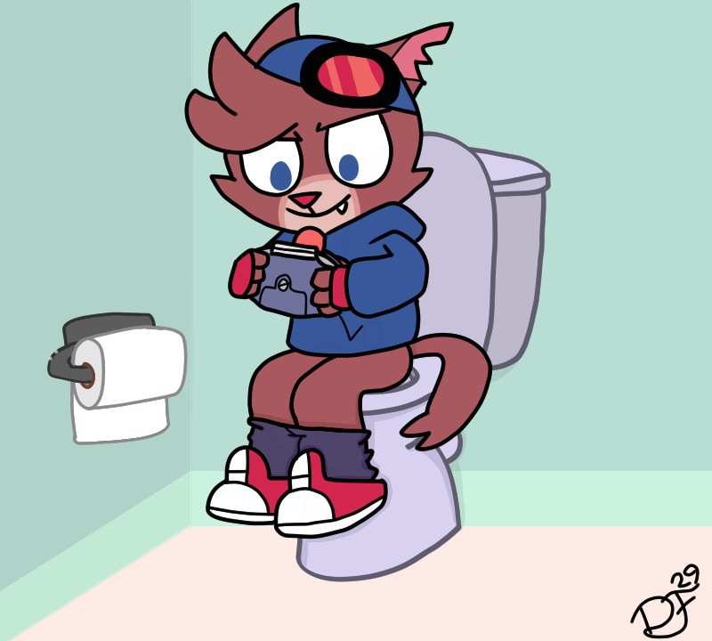 Oh my gosh YESSSSSSS! I've always wondered how Murphy would look like sitting on the toilet haha. This is absolutely ADORABLE and absolutely well drawn :3