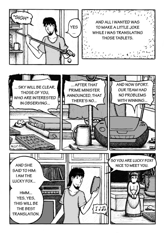We start with our main character who seems to have some unexpected furry company in the morning.