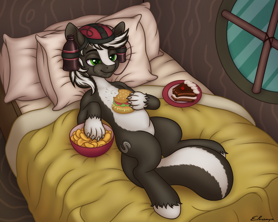 Zenawa always enjoys being a lazy SkunkPony whenever he can. Delicious snacks always make a lazy day