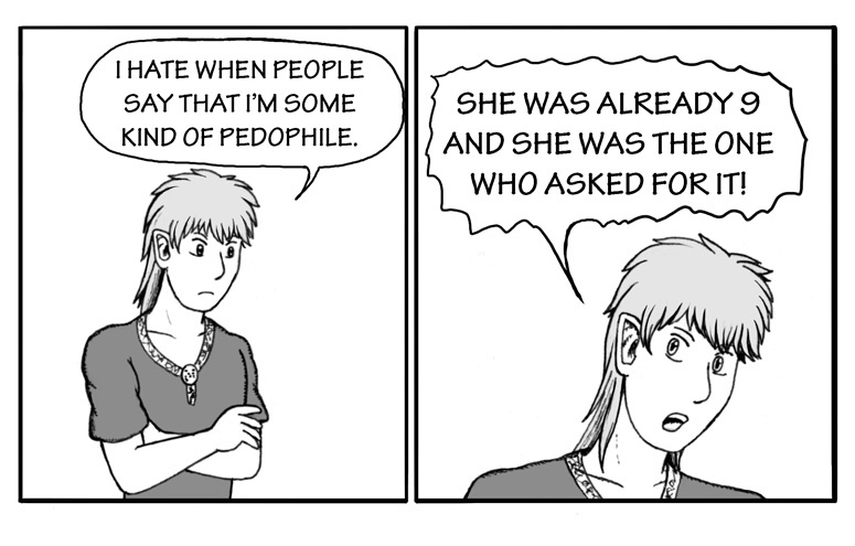 Silly thing that came into my mind and I had to draw it. Yes, Jantar did it with 9-year-old, but there was nothing wrong about that. For the same reason why there's nothing wrong with Trace from Two Kinds doing it with 11-year-old. Those are different worlds, but the reason is the same.