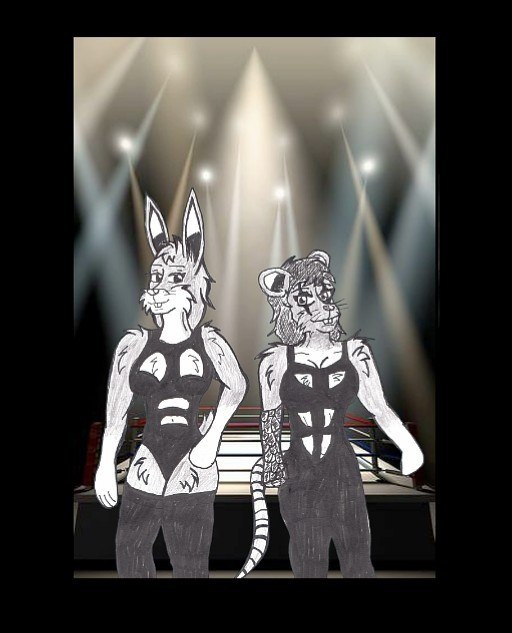 Is a picture of Sylvie and Hazel in wrestling attire, at a stadium. This senrio could work, as after all, they are dimension hoppers.
