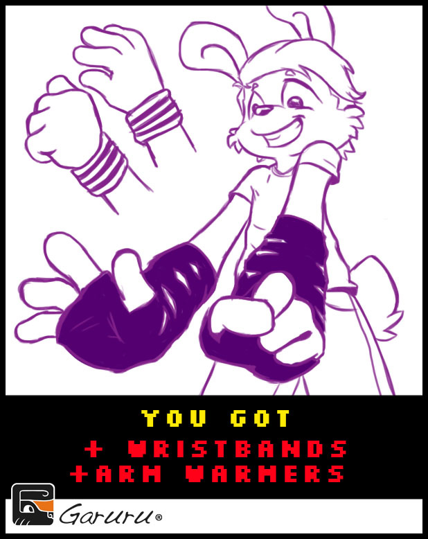 Garuru got a a black and withe wristbands and purple arm warmers. *congratulations song*