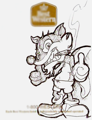 It's like he's the asshole who made smoking cool. A skunk doodle that really grew on me after a little time in a certain hotel chain. Probably didn't need to blur the name but I did just in case they didn't see fit to associate themselves with a pervy politically incorrect cartoon person.