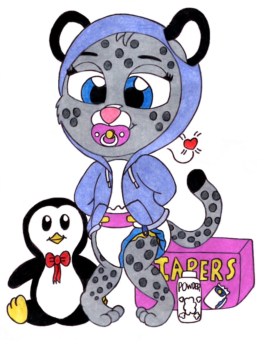 So, one thing to know about Laura is that she had her most fun times with mom when she was a baby and from time to time by herself would suckle on a pacifier and strap on a big poofy disposable diaper. It makes her feel closer to her mom after she passed away, She also has her penguin stuffed toy her mom gave her to snuggle with as well.