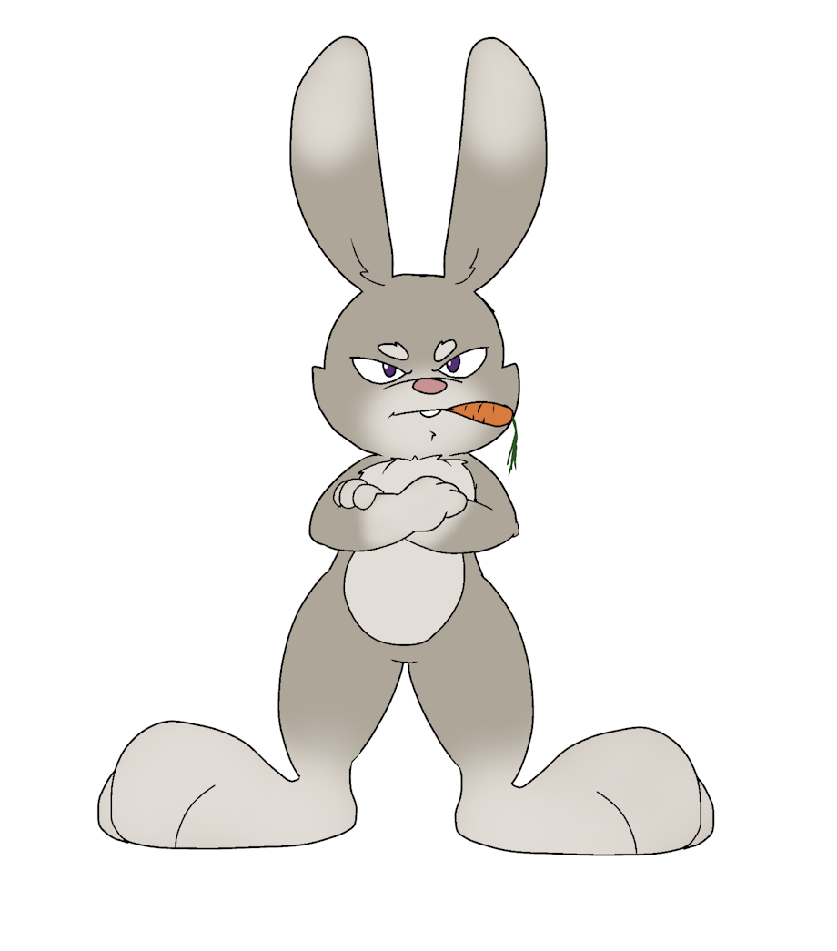 A remodel of rabbit, wanted to keep the tough guy attitude but without making him edgy lookin, and gave him purple pupils :3