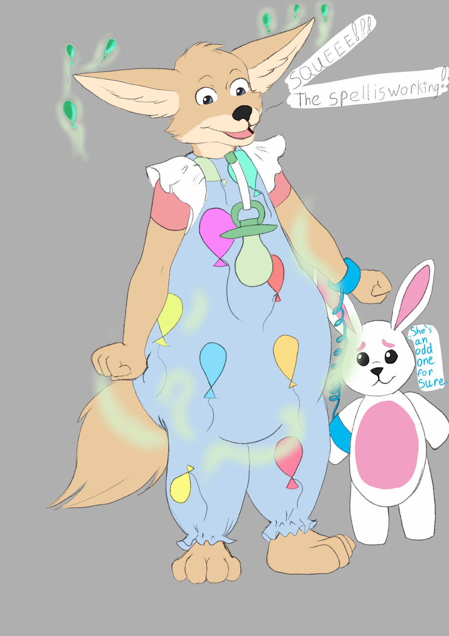 Becky loves everything squeaky inflatable and shiny. Her one goal is to be a big puffy balloon herself. Fortunately her plush bunny familiar is always there to keep her from floating away with that leash.