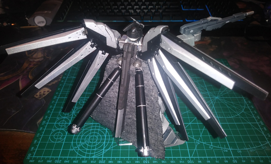 Gundam No Name: "Breaker" Technology & Combat Characteristics It is unknown who created this unnamed mobile suit. However it is clear that many different stolen technologies were used in it's creation, including that of a gundam as it's base. Although the suit is equipped with a cockpit for a pilot, it's sophisticated on board A.I. allows it to function autonomously. This gundam features a plethora of short and long rage offensive capabilities, as well as defensive abilities which has earned it the name of "Breaker" by it's enemies. Currently without a pilot, this mobile suit often appears in areas of great conflict, carrying out it's unknown mission of destroying all combatants until all fighting has ceased. If the suit comes under danger of destruction, it will activate it's self preservation protocols, and flee the battle. Among appearing in conflicts and acting autonomously, it is always scanning the human personel of the area, as if searching for a worthy pilot, to further it's unknown goals. Twin Gundam Nucleus (GN) Drive A GN Drive is a semi-perpetual generator, scaled for installation in a mobile suit, which harnesses the byproducts of baryonic decay as an energy source. The unnamed gundam utilizes two of these drives, one mounted on the back of each of it's shoulders. Like every other power source, a GN Drive has a limited moment-by-moment output; however, due to its very nature, a GN Drive will continue to supply power for a theoretically infinite period of time, so long as the GN drive is not pushed to breaking limits. This power source is used secondary for the unit, it's main power source being it's nuclear reactor. Psycho-Frame Cockpit The unnamed's cockpit is lined with nanoscopic psycommu receptors, allowing a "special" pilot to operate both the mobile suit and psycommu weaponry with ease. ZERO System An interface for achieving the "perfect victory", developed to make the pilot keep up with a machine performance that surpasses all other mobile suits. Since it seriously affects the physical functions and mental state of the pilot, a person without strong mental strength can't control it. Nanolaminate Armor This defensive paint forms a multilayer molecular arrangement capable of handling impact from the outside, but it can break or peel off, requiring repainting. At first glance the armor seems hard, but in principle it's like a very thin cushion with several layers. It is capable of rendering mobile beam weaponry ineffective by diffusing and deflecting the fired beam, minimizing the damage done. However, the nanolaminate armor does not absorb the beam's energy or weaken it.he nanolaminate armor is also effective against physical projectiles as its energy bearing molecules can absorb the impact from live ammunitions and explosive charges, thereby protecting the machine's body from damage. As a result, ranged firearms can not score decisive hits against them and may only shave off small pieces of it unless at close range. Armaments Demolition Knife Despite having the word 'knife' in its name, the weapon is actually a large folding blade. Stored on the back in its folded form when not in use, the unfolded Demolition Knife is taller than the unit itself. Due to its foldable nature, there are weak points in the strength aspects of the blade. Twin Buster Rifle A double-barrel type Buster Rifle. The dual emitted beams ionizes the surrounding atmosphere, creating a violent plasma vortex with a radius of 150 meters centered on the optical axis of the beam and a scorching torrent of several tens of kilometers. However, by adjusting the output, the affected area can be altered. The beam itself has a composite structure, consisting of low speed but highly destructive particle beam running through the center of a high speed and highly penetrative beam. It is a type directly connected to the generator so rapid fire is also possible. Beam Saber The unnamed Gundam carries three beam sabers for close combat, two stored in the back-mounted funnel racks and one stored in the left forearm. The beam sabers stored in the funnel racks are of a custom type and can emit a second beam blade from the bottom of the hilt. The beam saber stored in the left forearm is of a standard type and serves as a spare weapon. Fin Funnel The unnamed Gundam carries 6 fin funnels, mounted on the backpack's funnel racks in a wing-like formation. These remote weapons are the unnamed's trump card in engaging enemies from a single opponent to multiple enemies. Thanks to its design features, such as its triple block structure that allows for AMBAC movements, the presence of built-in miniature generators, etc, the fin funnels have higher performance than previous mobile suit-use remote weapons. The fin funnels can arrange themselves into geometric formations to deploy the fin funnel barrier, a defensive field that can repel any attacks with lower output than the fin funnel's. The fin funnels can be recharged when attached to the funnel racks. Special Equipment & Features Twin Drive Output In a two Drive configuration with a regular setup, the total amount of particle output is simply double of a single GN Drive because the number of Drives has doubled as well. However, with a 2 Drive machine using a Twin Drive setup, the resulting particle generation is not double of that of a single Drive but instead is squared that of a single Drive's output. This happens because of the synchronization of the 2 GN Drives, which allows the Twin Drive System to achieve such high particle generation rates. Trans-Am System During Trans-Am, all of the compressed high-density GN particles accumulated in the Gundam are fully released, enhancing its thrust and defensive capabilities as well as allowing it to perform at three times its normal output for a limited time. The entire Gundam also appears red as the tremendous amount of GN Particles surrounding and covering the machine as well as those within the GN Cables and in the minute paths in t