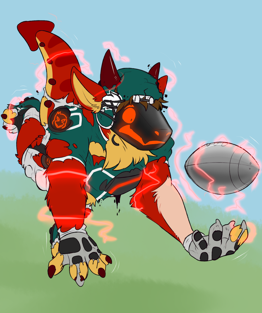 Can't even trust my teammates, who decided to prank me by tossing me a robotic football during practice, which transformed me into a Protogen after I caught it!