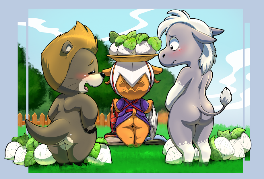 After running out of Bells, these two bartered off all their clothing for some extra turnips.