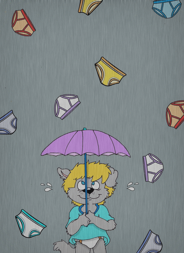 One night before going to bed, Lupus was unsure of what kind of undies he wanted to wear the next day! Still undecided, he went to sleep...later that same night, he had a dream...a dream that it was raining...not just water...but lots on undies too!