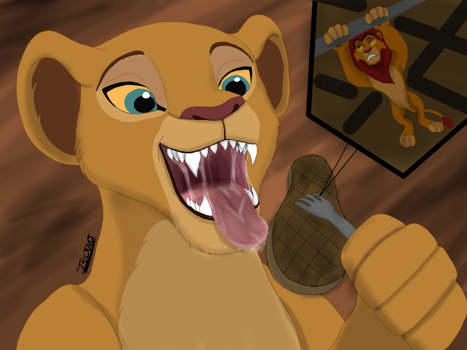 and in this case we see simba again in the role of micro prey and apparently he has been trapped in what is Nala's lunch, meanwhile the lioness is about to enjoy her juicy steak with an unexpected extra "ingredient"