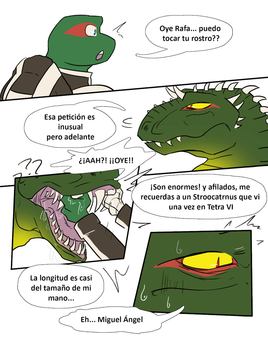 Mikey aguantese a que los niños no estén presente no vez que impresión les das AJAJAJA pero bueno no lo culpo cualquiera querría comprobar el paqueton de Raph después de eso