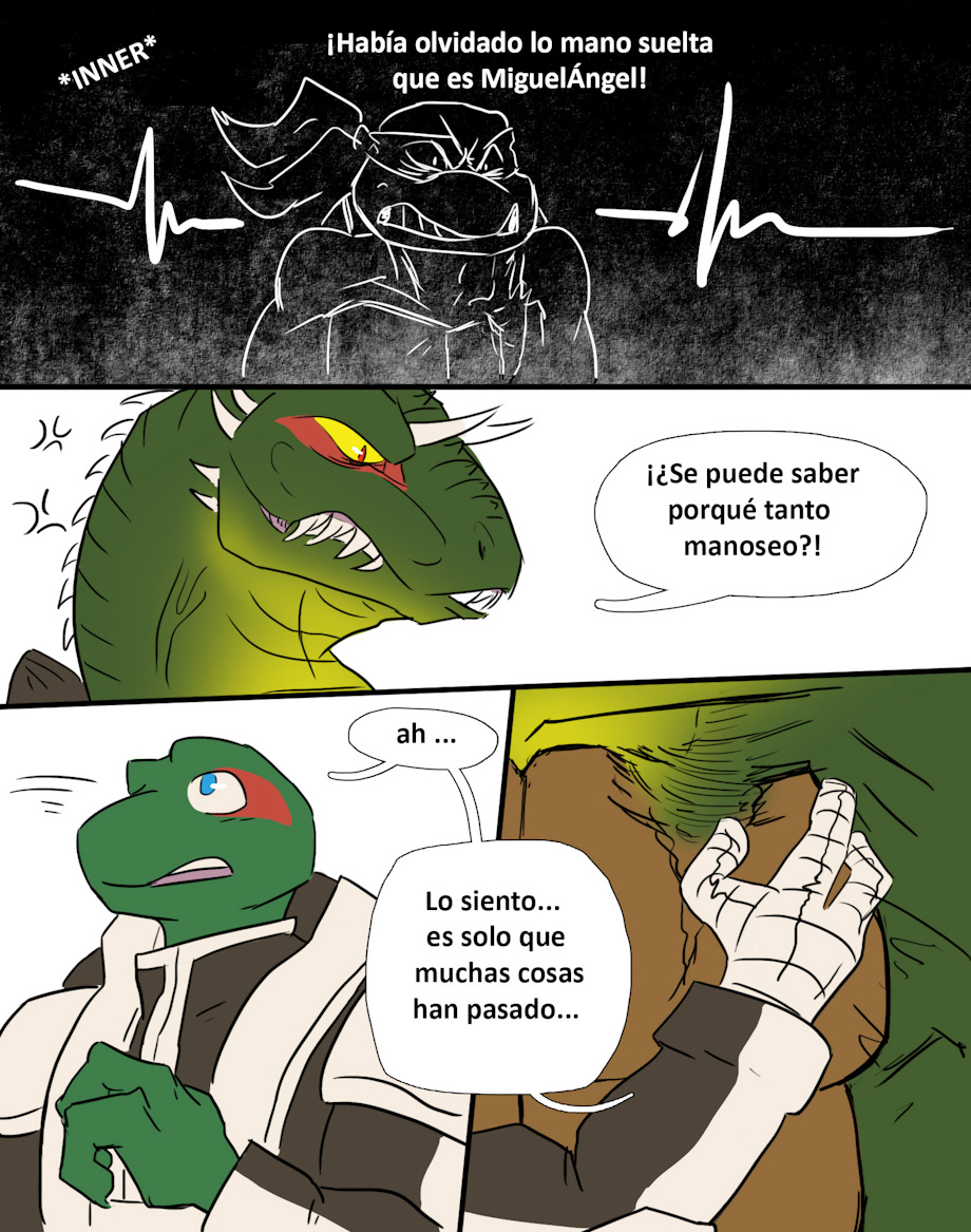 Mikey aguantese a que los niños no estén presente no vez que impresión les das AJAJAJA pero bueno no lo culpo cualquiera querría comprobar el paqueton de Raph después de eso