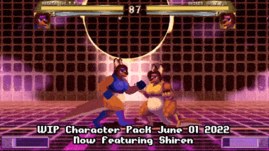 But yeah, this is an early WIP of another character, Shiren being added to the WIP character bundle. This update also comes after a few smaller updates I've made to the characters I've had on there. Namely Aurumo's animations being updated along with a handful of attacks of his being tweaked for balancing.