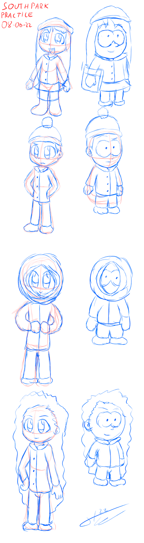 Practicing South Park characters with two styles, manga and cartoon.