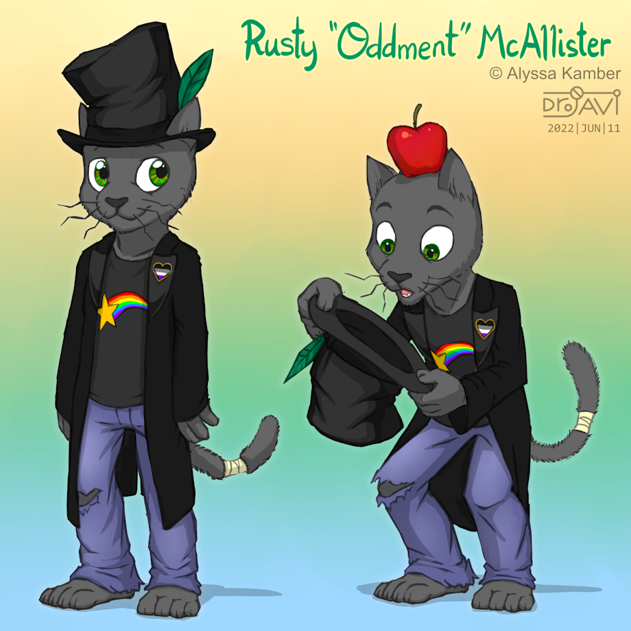 Rusty's a magician, and on the right, he's just started one of his acts.