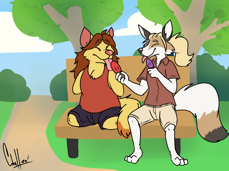 Summer's coming up, so I thought it'd be appropriate to have at least one summer pic done... but I've been remarkably unproductive with art lately. So... why not get someone else to draw a summer pic for me instead! These two seemed like good candidates for it, too.