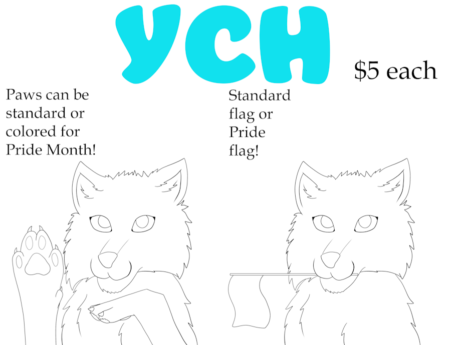 Opening a YCH for wolfs or the like. Flag and paws can be customized in any way, perfect for Pride Month! Just nothing hateful or political please.