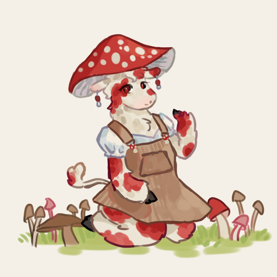 picking mushrooms in her little mushroom hat !! dm to adopt // commissions are open <3
