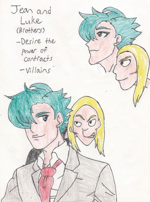 They are searching for the wizard to obtain the power of the contracts,since contracts only work on toons. Jean is very calm and cunning, while his brother Luke is very violent, carrying around a knife covered in DIP
