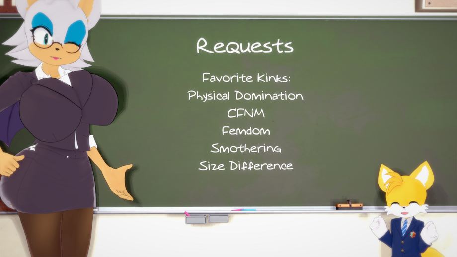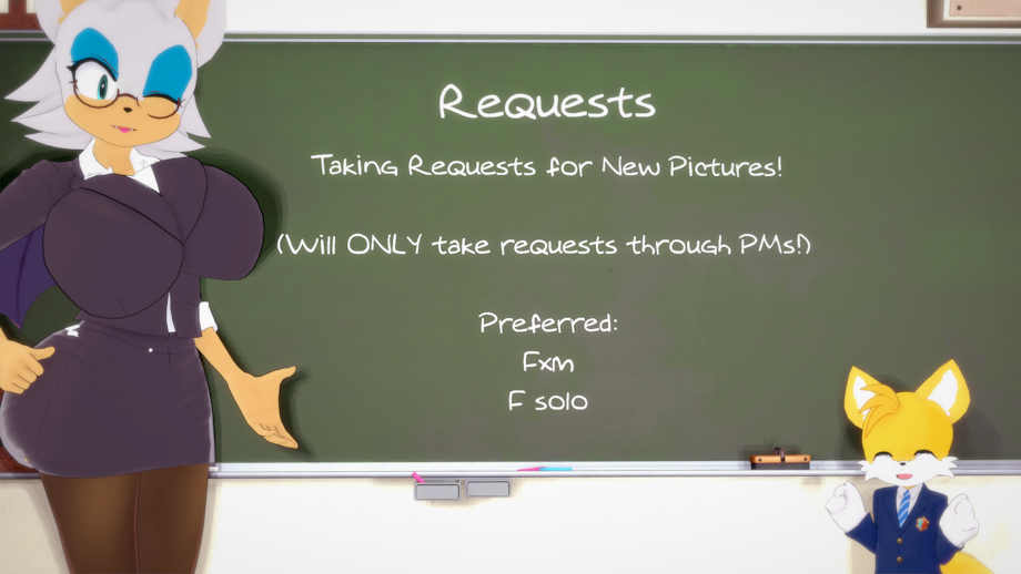 As an example: "Hello! I'd like for you to do picture with Rouge and Tails inside a train, where she's smothering his face with her breasts and pinning him against a window."