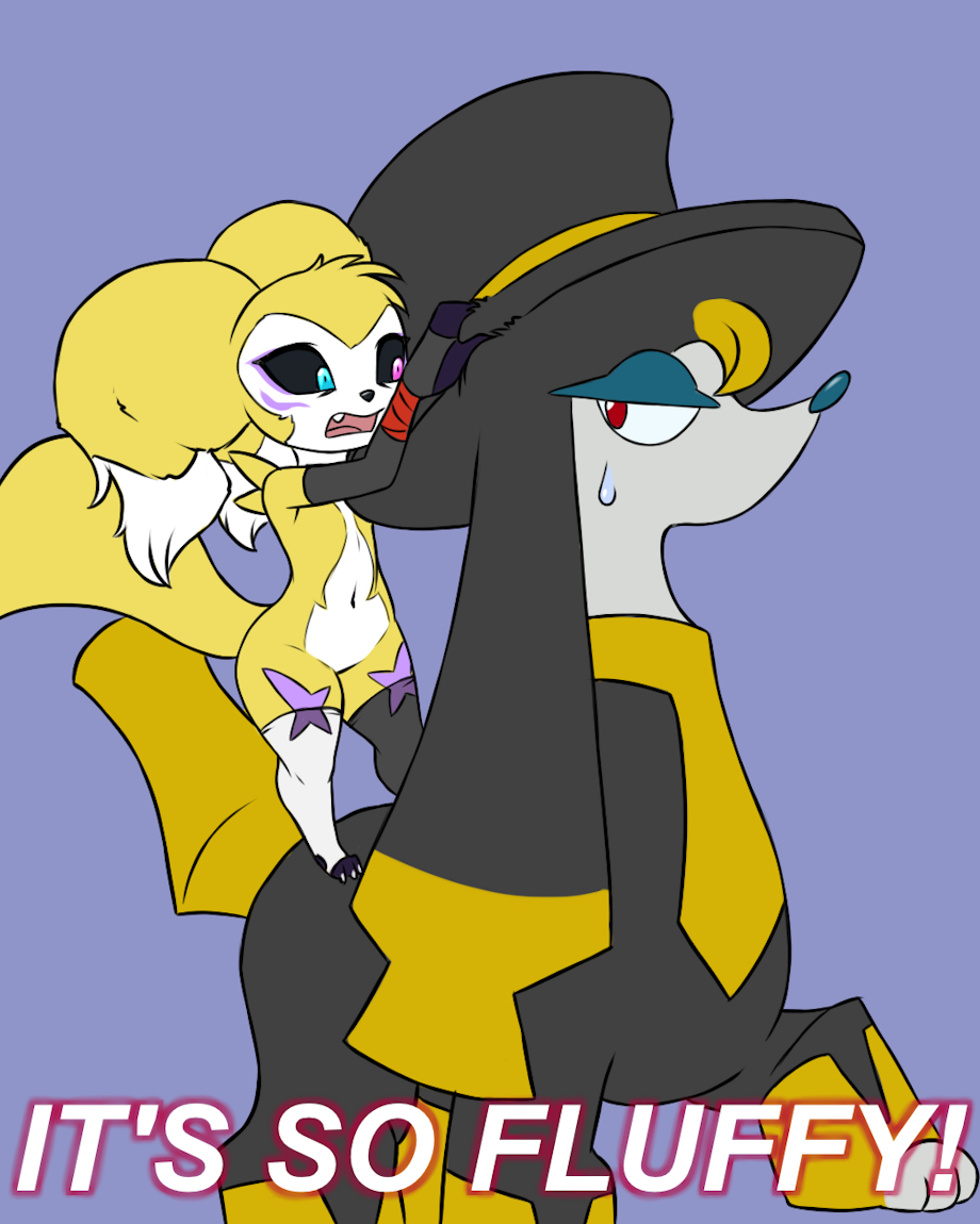 Stream commission for solus, of their Furfrou OC with Renipmon being silly.